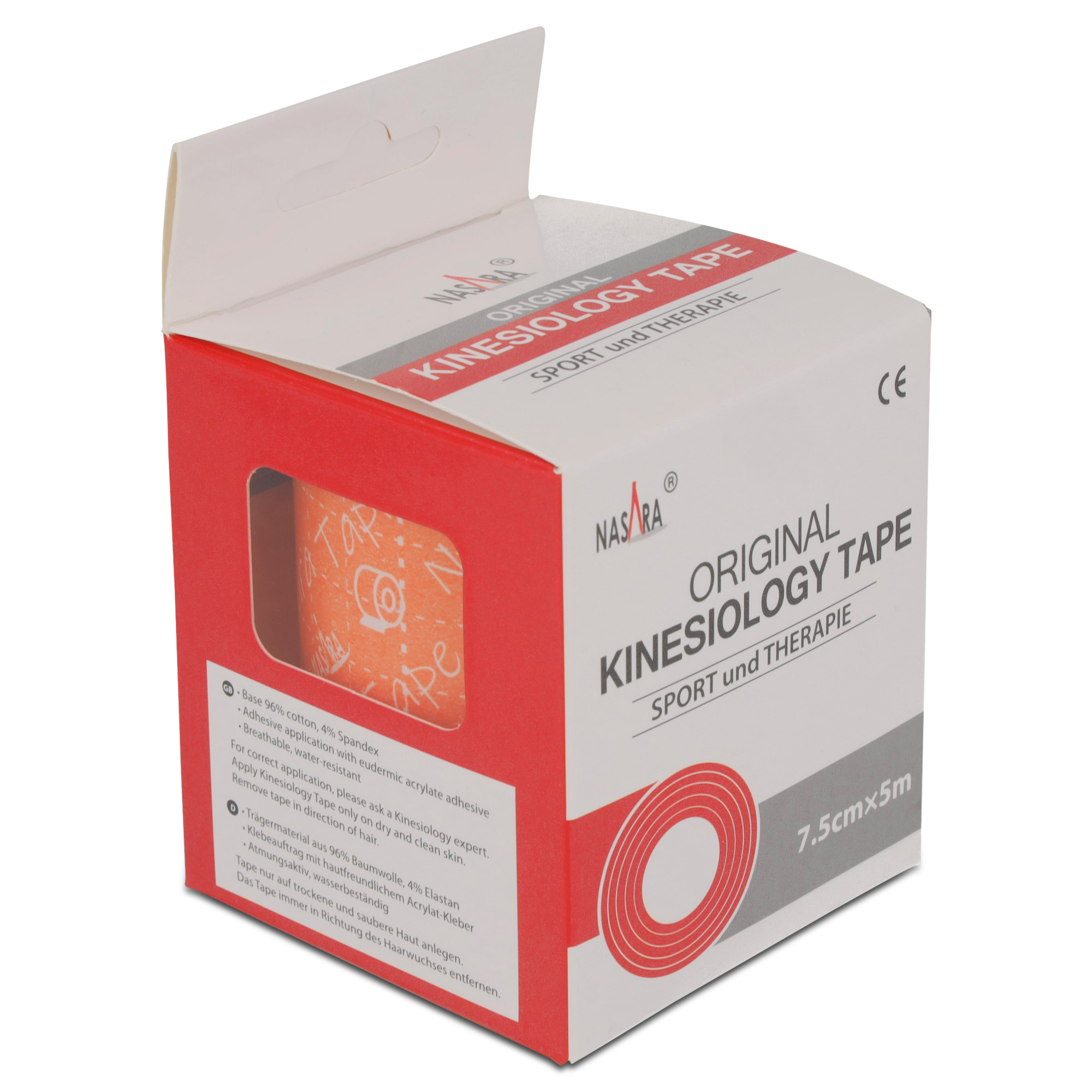 Spezial-Rollenmaß 7,5 cm x 5 m Ideal für Sonderanlagen, weitgefächerten Lymphtechniken Original Kinesiology Tape von NASARA®. Eines der erfolgreichsten und besten Tapes auf dem Weltmarkt mit hervorragenden Klebeeigenschaften. Eigenschaften Das Tape ist aus 100% Baumwolle. Der reine, hautfreundliche Acrylatkleber wird in Wellenform aufgebracht. Das Tape lässt sich gut verarbeiten und präzise kleben. Das Tape ist luft- / wasserdurchlässig, aber wasserbeständig und ermöglicht über die gesamte Tragezeit hohen Komfort und sehr gute Hautverträglichkeit. Original NASARA Tape wird u.a. von der Deutschen Gesellschaft für angewandte Sportmedizin empfohlen und wird in zahlreichen Olympiastützpunkten, Bundesligamannschaften und von Top Athleten verwendet. Für Therapeuten und Ärzte gelten Sonderkonditionen!